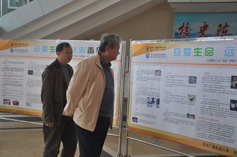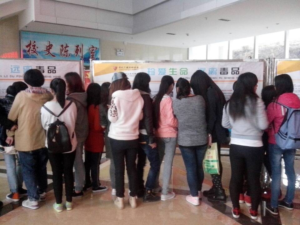 根据省教育厅办公室转发省禁毒办《关于组织开展禁毒雷霆严打整治行动预防教育“第一战役”的通知》(黔教办安稳[2014]47号)精神,学校党委、行政高度重视。2014年3月28日—3月31日,由学校综治办牵头,各系、中职校参与,通过发放《中华人民共和国禁毒法》宣传画、《中华人民共和国禁毒法》、《贵州省禁毒条例》、新型毒品防范手册和宣传展板等形式,组织师生在学校办公楼一楼大厅开展了为期4天禁毒宣传教育。