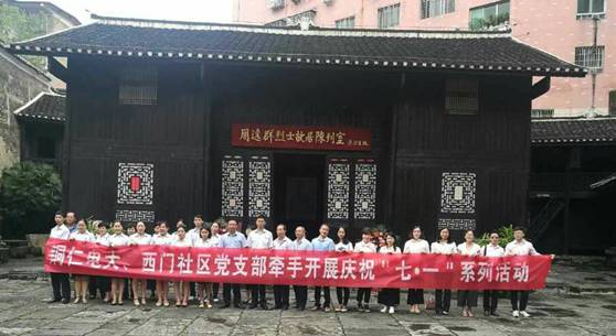 铜仁广播电视大学与西门社区全体党员同志到红色革命教育基地----周逸群故居开展“庆七·一,缅怀先烈”革命教育活动。在烈士故居,在党旗下庄严宣誓,大家重温入党誓词,回顾入党宣誓时的庄严承诺与坚定决心,缅怀先烈英豪。
