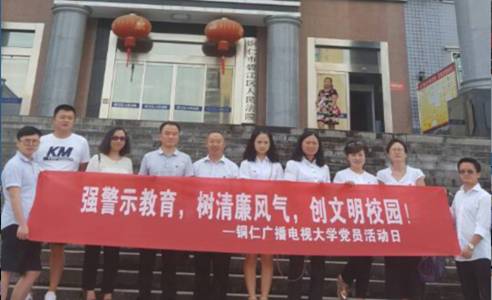 7月7日是“七·七”卢沟桥事变80周年纪念日,也是铜仁电大党员活动日。为缅怀先烈,警示后人,强化四风,提升全体党员干部的思想政治素养。7月7日上午,铜仁电大副校长宋友德、纪检专员李剩勇率学校全体党员干部及入党积极分子到碧江区人民法院警示教育基地开展“拒腐防变---守住第一次”主题活动,旨在通过学习观摩提高全体党员干部的警惕性和拒腐防变能力,让廉政文化之风吹拂校园,为学校持续稳步发展、为铜仁市“一区五地”建设贡献力量。