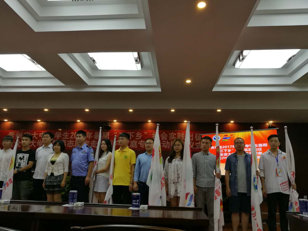 201777日,贵州省2017年大中专学生暑期“三下乡”社会实践出征暨全省大学生禁毒志愿者走进万户家庭专项活动授旗仪式在贵阳中医学院举行,贵阳地区11所高校的14支大学生志愿者队伍参加仪式,校团委龚左林老师代表我校“三下乡”志愿服务队参加了此次活动。