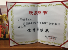贵州首届多彩风舞蹈新作品大赛是为深入贯彻习近平总书记在全国文艺座谈会上的讲话精神和中共中央关于繁荣社会主义文化的意见,由贵州舞蹈家协会和多彩贵州股份有限公司主办,旨在宣扬贵州多民族文化艺术,鼓励本土编创,充分显示贵州近年来舞蹈创作成果。2017年7月30日,我校远程教育教学部李美兴老师参加了贵州省首届多彩风舞蹈新作品大赛,荣获入围奖和优秀表演奖,她的舞蹈《梦回尼罗河》在7月21日从80多个作品中脱颖而出进入半决赛荣获入围奖,在7月30日的总决赛中荣获优秀表演奖,并受邀在贵阳大剧院演出。此外,2017年1月12日,李美兴老师还参加了2017魅力中国·国际青少年邀请赛,凭借舞蹈《埃及鼓韵》荣获银奖,同时荣获优秀指导老师奖。2017年7月26日,参加WPAL2017国际标准舞公开赛,荣获一等奖。