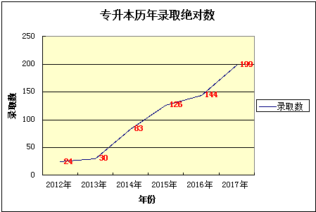今年专升本考试工作启动早,前期通过张贴海报、微信后台推送进行宣传,各学院也高度重视毕业生升本工作,对于新增专业我中心积极主动对接本科院校增加对口专业,对学生报名考试录取过程全程服务,争取省市招办的支持。近年我校专升本录取绝对数连年攀升,成为高职招生吸引优质生源的一大宣传点,同时有效扩大了学校在社会各界的影响力和口碑。