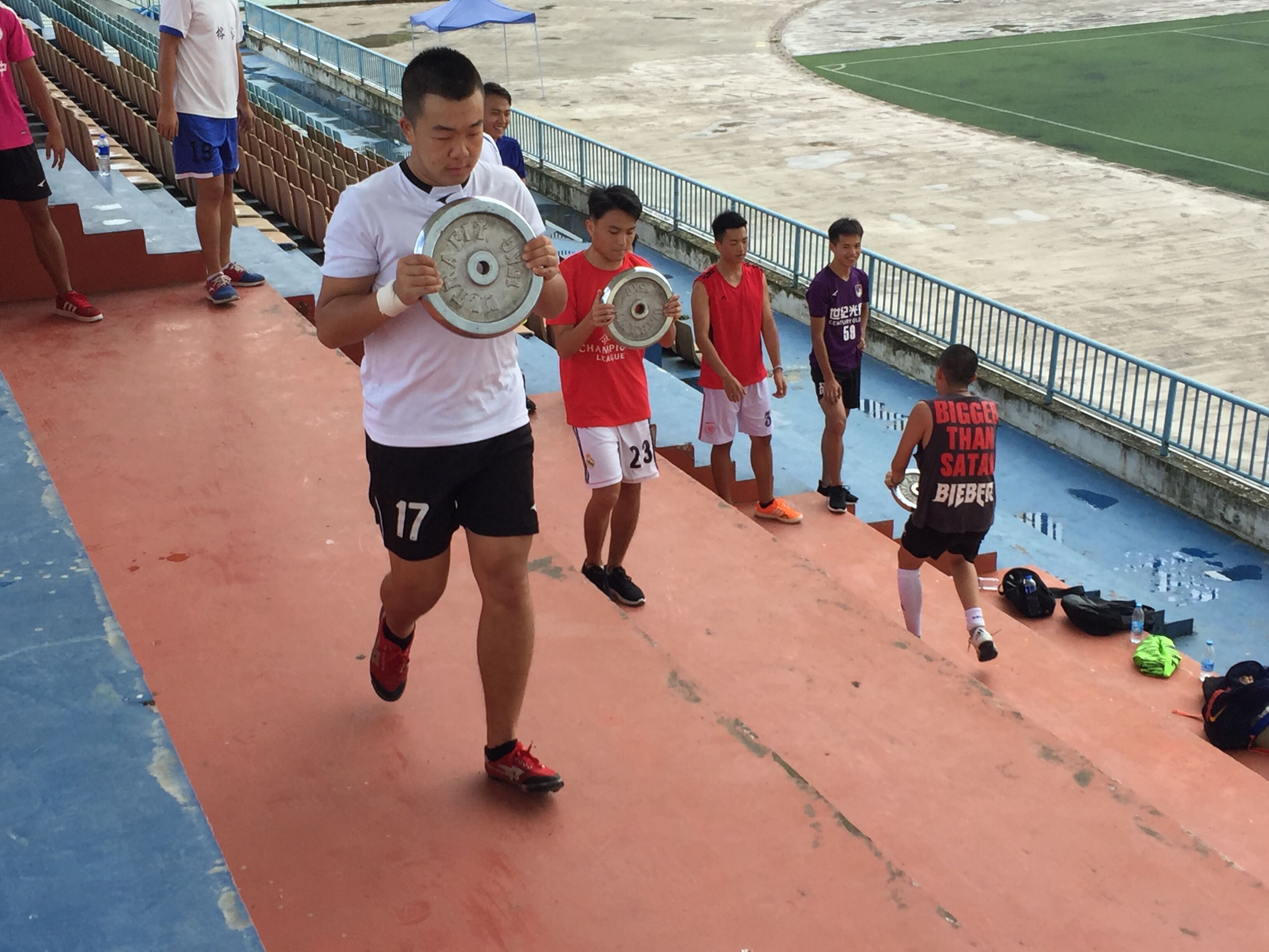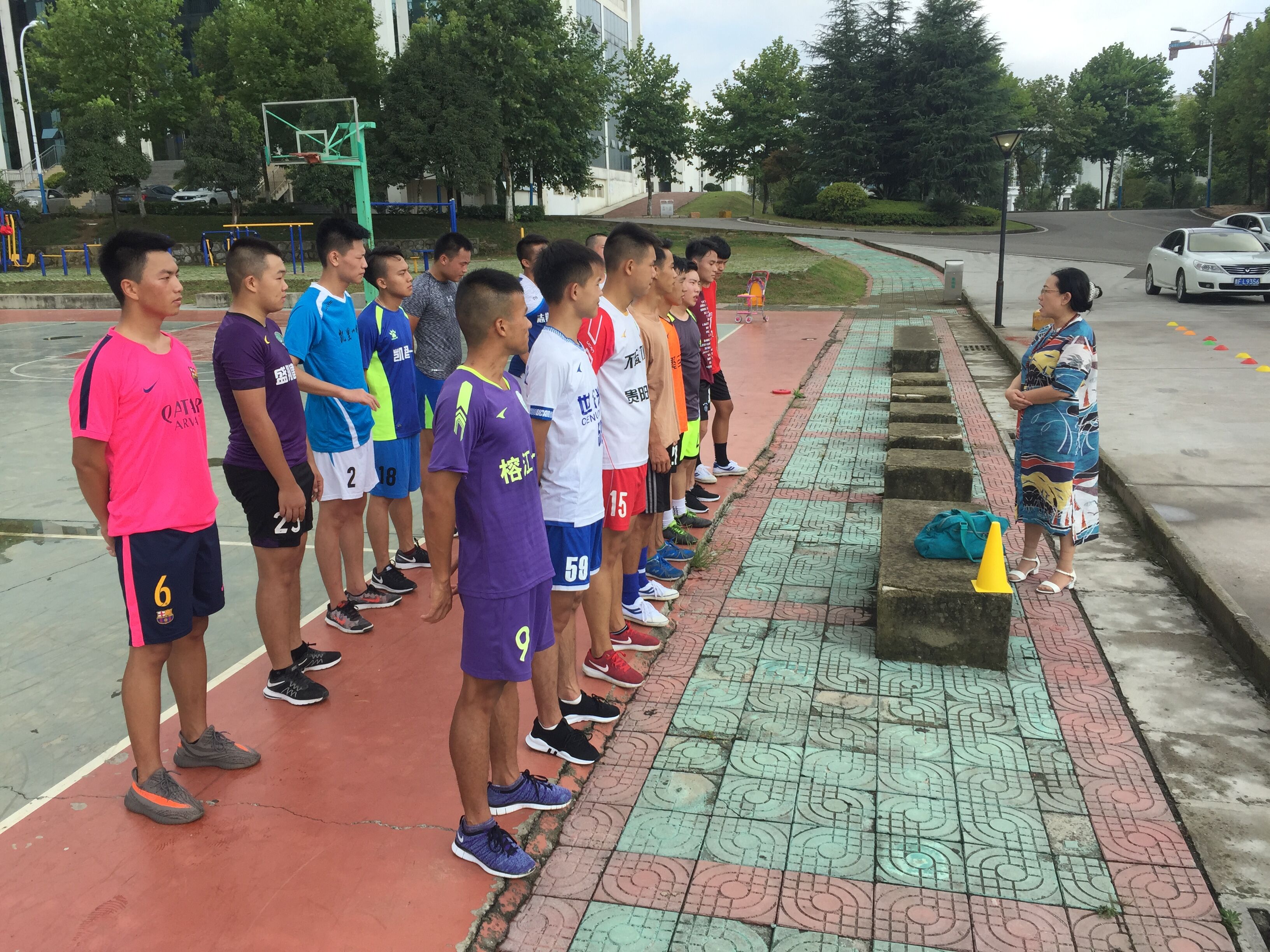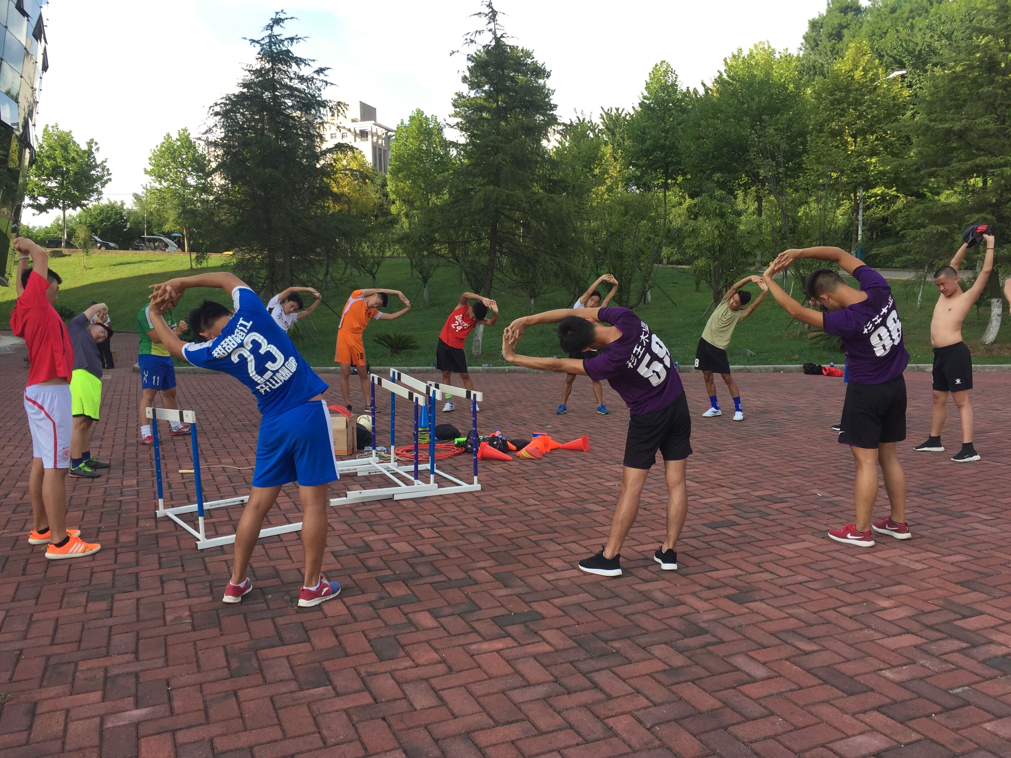 运动队的训练从8月25日开始,蒋佰宏老师制定了科学严格的训练计划,陈国敏主任在周末到学校看望了正在训练的队员们。