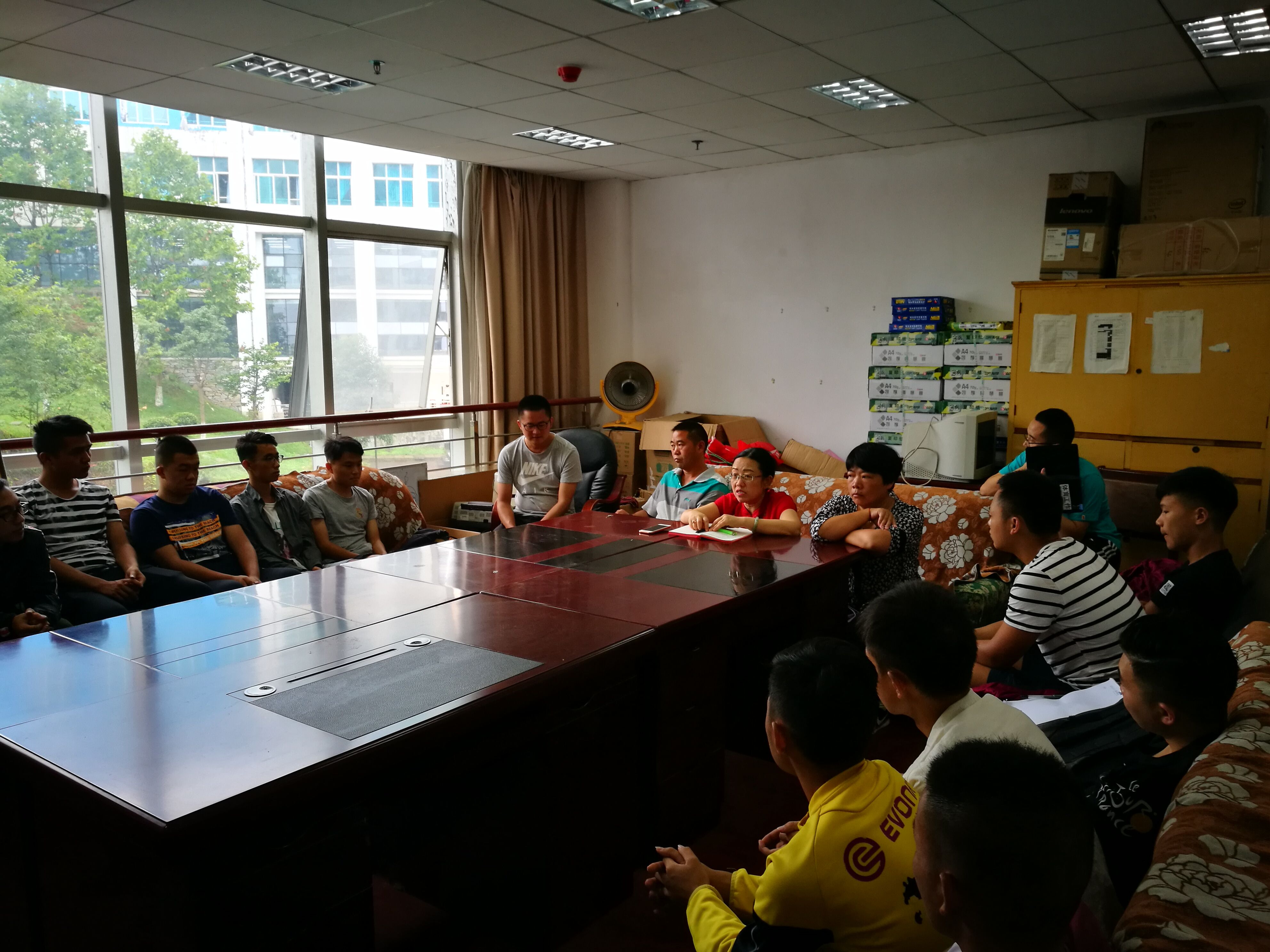 2017年8月27日早上,我校备战2017年贵州省大学生甲级足球联赛运动队新学期集训动员会在行政楼323会议室召开。基础部主任陈国敏、副主任谭永凤、体育教研室主任陈尉,教练员团队及全体运动队参会。