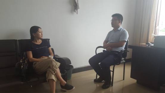 田海燕同志与县委组织部李松林同志交流脱贫攻坚经验