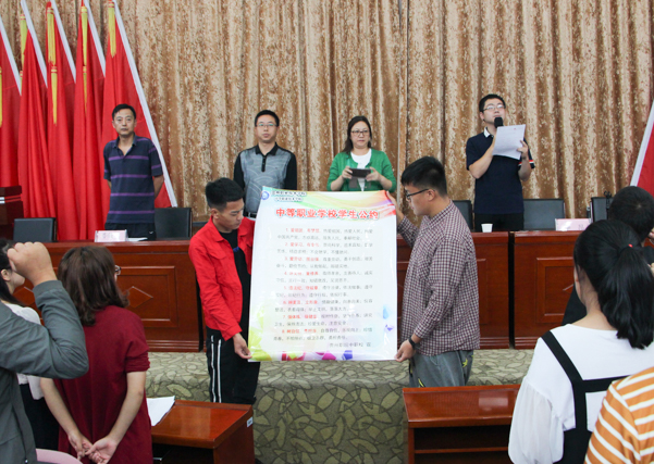 2017年9月28日下午,中职校在行政楼9楼会议室举行一年一度的新生开学典礼、安全教育暨学生公约签署仪式活动。中职校全体老师、学院保卫处罗文金处长及2017级新同学出席。