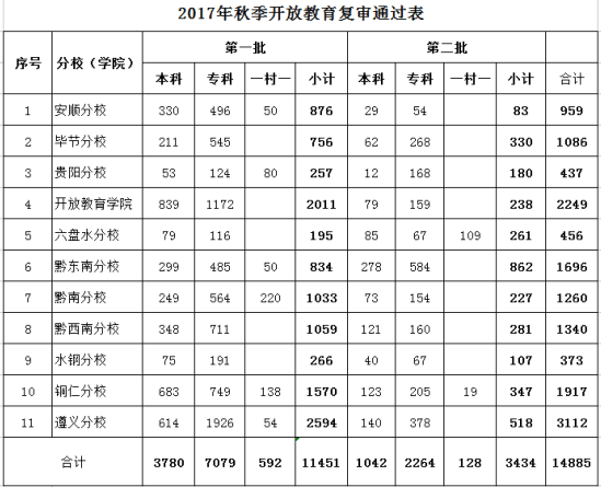 10月13日,随着第二批次复审工作的顺利完成,标志着全省开放教育2017年秋季招生工作顺利结束。本季通过复审上报国家开放大学共14885人,其中,第一批次(截止9月10日)11451人,第二批次3434人,各分校招生通过复审人数上报国家开放大学具体如下: