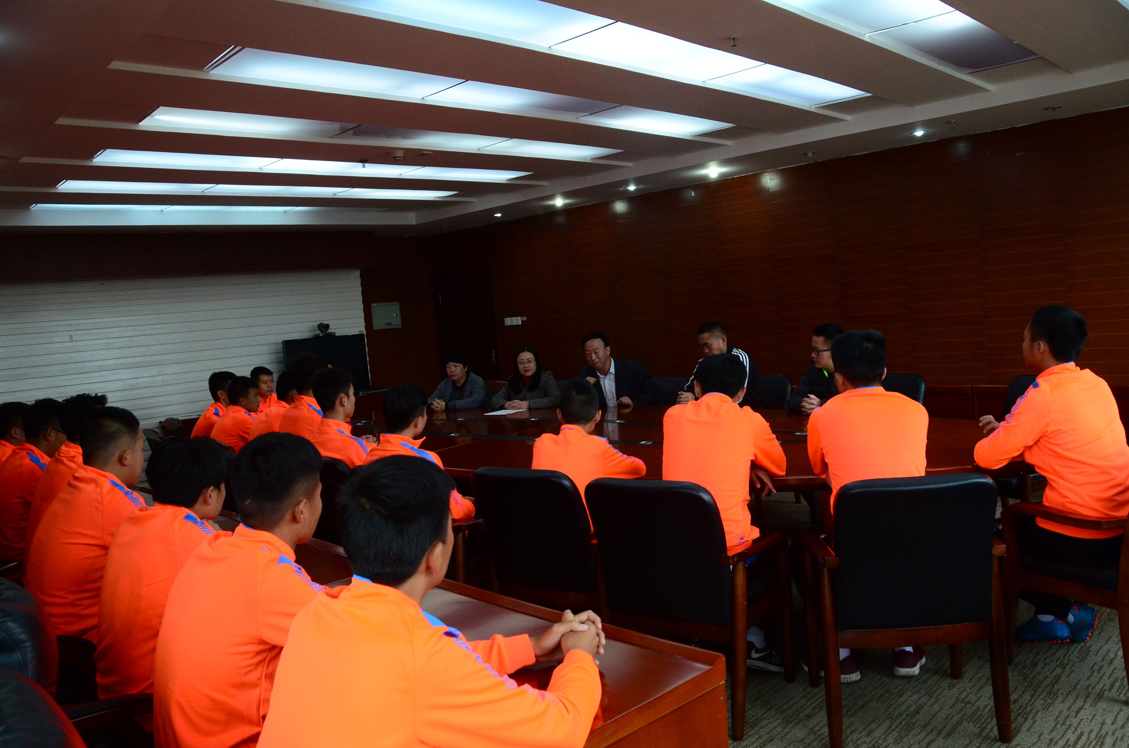 陈国敏主任向全体教练员、运动员传达了学校对于本次比赛前期、中期的所有工作的大力支持。希望我校足球运动队在本次大学生足球联赛中,顽强拼搏,以优异成绩迎接党的十九大胜利召开。