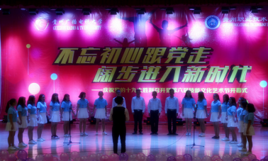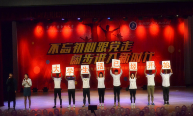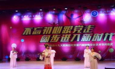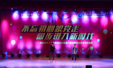 由校团委主办的“不忘初心跟党走 阔步进入新时代——庆祝党的十九大胜利召开暨第六届技能文化艺术节开幕式”11月8日晚上7点在我校礼堂隆重举行,学校党委书记邓惠宾老师、副书记郭万才老师以及各学院党总支书记、团总支书记和在场师生共900余人参与了此次活动。