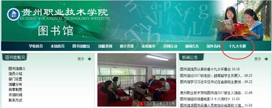 为深入学习和宣传党的十九大精神,图书馆和图书馆支部精心制作了党的十九大学习专题。专题包含党的十九大报告及解读、习近平总书记系列重要讲话全文、中国梦和中国共产党相关论著等内容,并通过图书馆网站、微信图书馆、移动图书馆等平台发布,向全校师生推送。