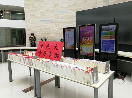 此外,为进一步发挥图书馆资源优势,图书馆和图书馆支部还挑选了一批相关图书,在图书馆一楼大厅设立党的十九大学习专架,在电子图书馆借阅机上设立党的十九大专题,供全校师生阅览。