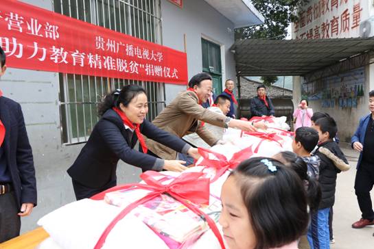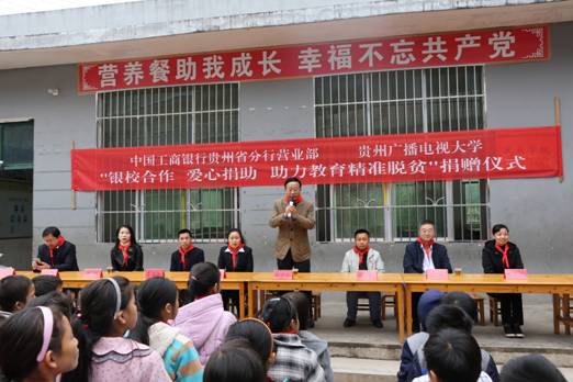 党委副书记郭万才代表学校发言,他说,一直以来我校党委将教育精准扶贫作为一项政治任务来抓,作为一项社会责任来履行,作为阻断贫困代际传递的一项善行义举来推进。通过精准识别、精准招生、精准培训、精准资助、精准管理等措施,取得了初步成效。我校牵手中国工商银行贵州分行营业部到刚边乡为加么小学、平正小学的同学们赠送床上用品,是贯彻落实中央、省委精准扶贫、精准脱贫工作部署的具体表现,也是对我校教育精准扶贫的大力支持。我校将继续采取有力措施,整合社会资源,坚决打好脱贫攻坚这场硬仗。