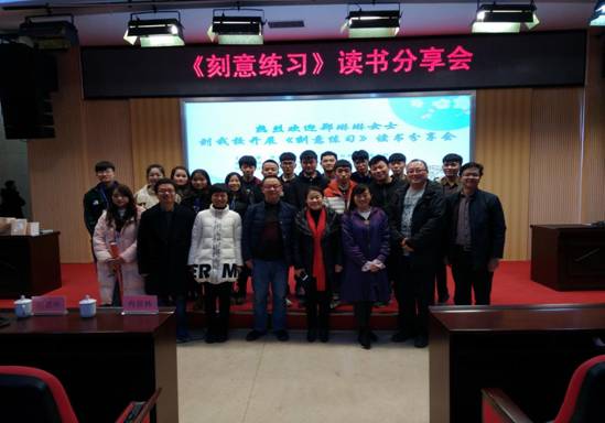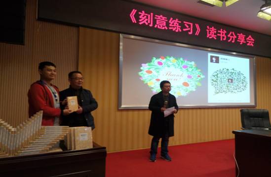为激发学生阅读兴趣,丰富课余文化生活,我中心邀请到了机械工业出版社郑琳琳(副编审)于2017年12月7日晚7:00在图书馆学术报告厅主讲《刻意练习》读书分享会,本次活动由樊登读书会主办,创新创业俱乐部承办,产教融合社会服务平台、校企合作与产业发展中心、招生就业指导中心、团委协办。参加本次活动的有樊登读书会贵阳分会会长、贵阳嘉信教育科技有限公司总经理等五位校外嘉宾以及260余名学生代表。