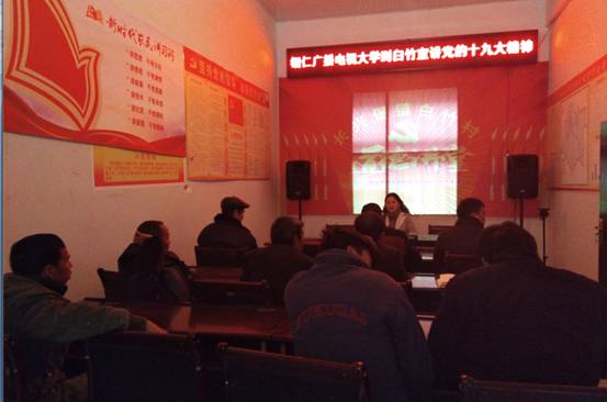 12月22日,铜仁广播电视大学校长田海燕一行到松桃县长兴堡镇深度贫困村---白竹村开展党的十九大精神宣讲活动及脱贫攻坚交流座谈。