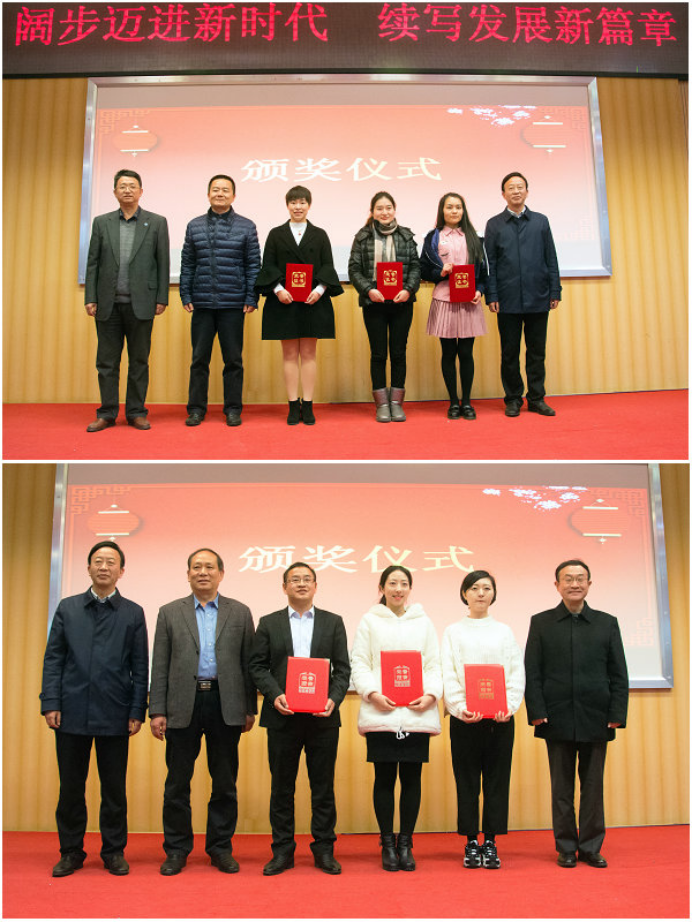 比赛结束后,在图书馆报告厅举行了2017年教师礼仪风采大赛、青年教师教学技能竞赛颁奖仪式,颁奖仪式由李勤副校长主持。教师礼仪风采大赛艺术与设计学院获得一等奖、经济管理学院获得组织奖,经济管理学院、建筑工程学院获得二等奖,信息工程学院、行政及教辅人员代表队、商业与贸易学院获得三等奖,远程教育教学部、基础部、机电与能源工程学院获得优秀奖;青年教师教学技能竞赛人文社会科学组杨吉莹老师获得一等奖,杜鹤鹤老师获得二等奖,王丽、黎国玉老师获得三等奖;自然科学基础学科组杨茂松老师获得一等奖;自然科学应用学科组方馨悦老师获得一等奖,邵昌明老师获得二等奖。邓惠宾书记、李皖校长、郭万才副书记、龚辉副校长、徐伟副校长、徐扬书记分别为获奖的团队代表及老师颁发荣誉证书。