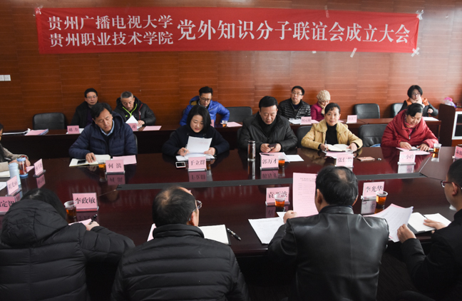 1月11日上午,我校党外知识分子联谊会(以下简称知联会)成立大会在云潭南路校区8楼会议室召开。校党委副书记郭万才出席会议。校党委组织部部长张仁俊、办公室主任何滨、党委宣传部统战部部长于立群、九三学社贵州电大支社代表和知联会全体成员参加会议。会议由党委宣传部统战部部长于立群主持。