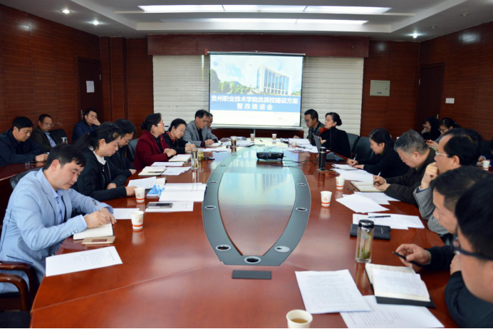 早春三月,万象更新,我校优质校建设工作也将迈入新阶段。2018年3月14日下午,我校在云潭南路校区五楼会议室召开优质校建设方案整改推进会。出席会议的校领导有李皖校长、李勤副校长,党政办、建设办、各二级学院、学工部、人事处、质量办、组织部、财务处、后勤处、科研处、校企合作处、网络中心、信息化小组部门负责人及相关人员参加了会议,会议由建设办办公室主任赵霖主持。