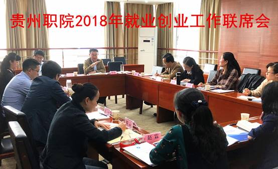 招就中心邓咏梅副主任传达了全省高校就业工作会议精神和学校2018年系列就业工作安排。省委教育工委赵廷昌副书记在全省高校就业工作会上特别提出表扬,贵州大学、贵州职业技术学院在2017年被省人社厅评为就业先进工作单位(全省共有15个名额,教育口只有2所高校),我校就业工作得到高度评价。