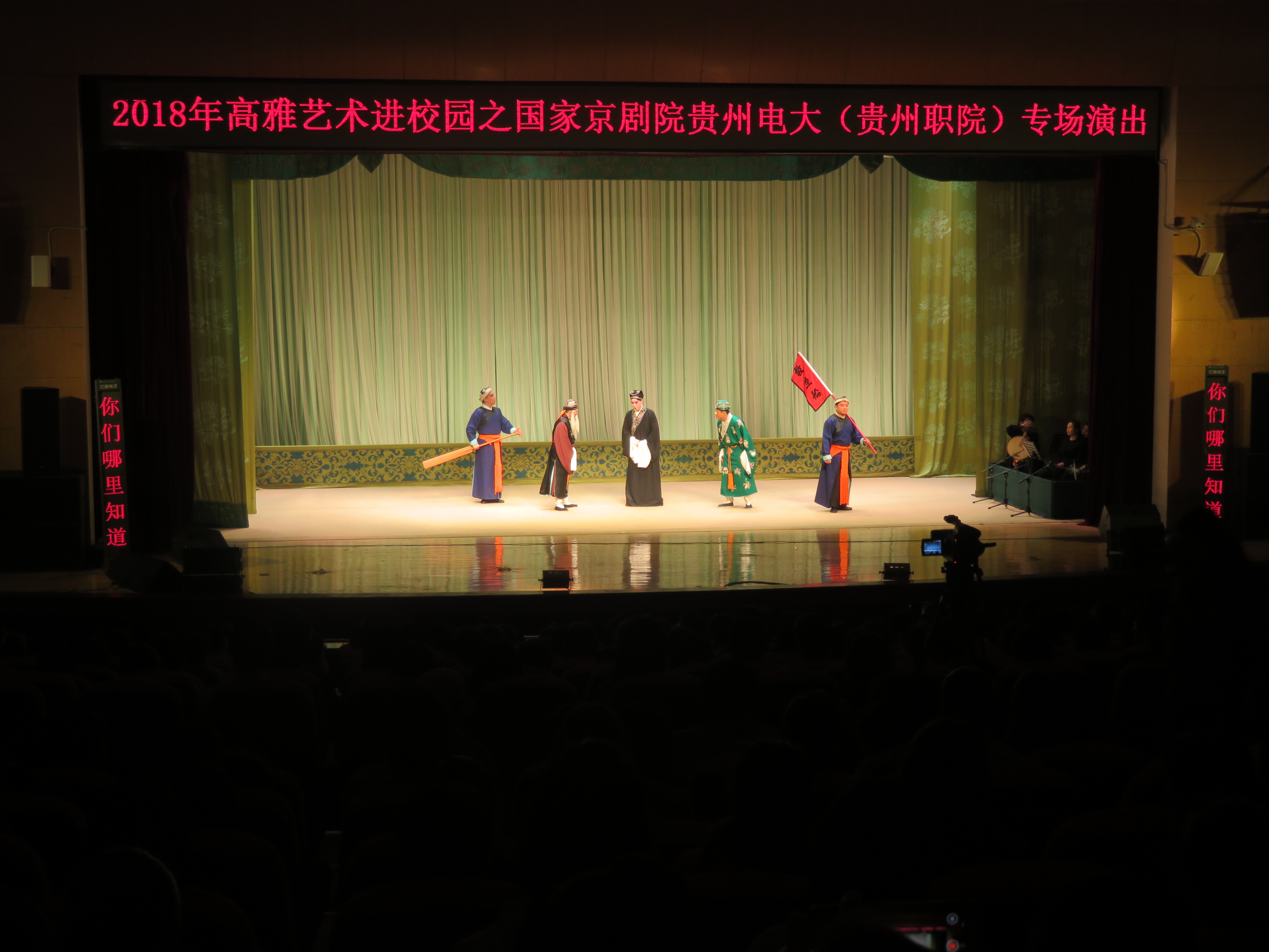 4月20日,教育部、文化部、财政部联合举办的2018年“高雅艺术进校园”来到贵州广播电视大学(贵州职业技术学院),国家京剧院的演员们为在场的一千余名师生表演了四大名旦之一程砚秋的代表作《锁麟囊》,我校党委副书记郭万才老师、副校长徐伟老师、副校长李勤老师、党委委员、纪委书记徐扬老师出席活动并观看了演出。