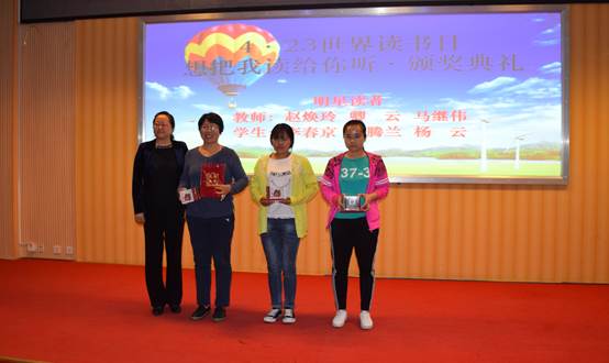 活动之六颁奖典礼。4月23日19时,“4.23世界读书日活动颁奖典礼”在图书馆学术报告厅举行,李勤副校长出席颁奖典礼并致词,她激励同学们为中华崛起多读书、读好书。经济管理学院罗洪霞副院长和团委李雪芬副书记作为颁奖嘉宾出席颁奖典礼。