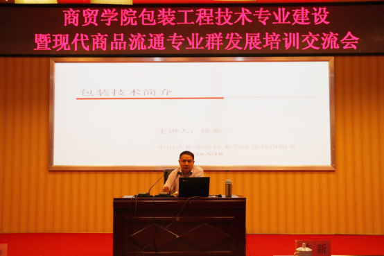 2018年5月18日上午10点,在图书馆二楼学术报告厅,商贸学院举行了专业建设暨专业群发展培训交流会。此次培训会邀请了中山火炬职业技术学院包装印刷系陈新主任就我院包装工程技术专业的专业建设及现代商品流通专业群的发展进行了培训交流。