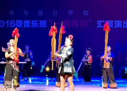 播音主持专业的演出特邀了贵州广播电视台金波老师担任晚会的主持;音乐汇演晚会上国家级非物质文化遗产木叶演奏家罗文军老师,为我们表演了以木叶为载体的乐器演奏。精彩表演一次次地把现场气氛推向高潮,增强了文化气氛的活泼性与艺术性。同学们在专业汇报演出这个大舞台上尽情展示文艺风采、凸显个性的魅力,感受着与优美同行,与高雅同行,与时代同行的快乐!