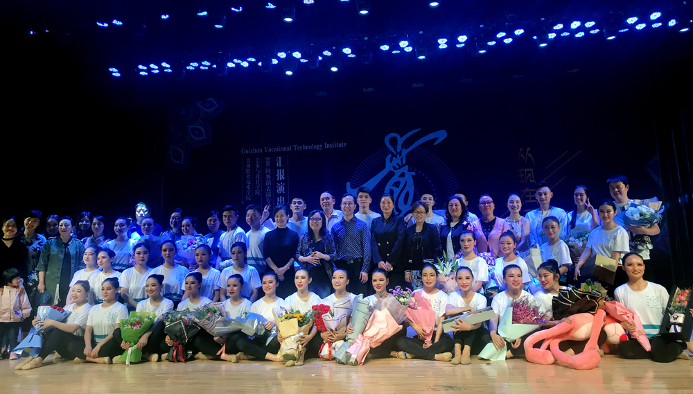 贵州广播电视大学(贵州职业技术学院)校长李皖老师、副校长徐伟老师、纪委书记徐扬老师、各部门和各学院领导、艺术与设计学院老书记梁正善老师以及贵州省舞蹈家协会副主席赵鹏先生等校内外嘉宾莅临演出现场。