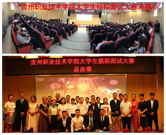 2018年6月21日下午,我校在图书馆学术报告厅举行了贵州职院大学生模拟面试大赛总决赛,邀请到中国青年创业社区贵阳站创新创业导师,人力资源导师王丕定;贵阳嘉信教育科技有限公司项目总监,成都高校特聘创业指导师余锐;美的集团厨房与热水事业部贵州区运营总监、贵州美泰益达厨卫销售有限公司人力资源总监朱凯茂;北京新锦成数据科技有限公司贵州区域经理石庆波四位企业高管担任决赛的评委。经管学院书记丁萍、机电学院书记卿云、信息学院副院长蒋红、商贸学院副书记王永峰、学生工作处处长陈鹰、招就中心副主任邓咏梅、李江波担任大赛的颁奖嘉宾到场观看了比赛。招就中心邓咏梅副主任为本次大赛致辞。