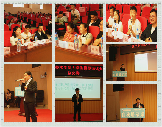 决赛分为自我展示和面试答题两部分,15名参赛选手在规定时间内展示了他们的职业规划和模拟求职方向,随后,面试官对选手进行了面试提问,题目涵盖了就业知识与经验、从业后解决问题的能力、工作责任感及主动性、职场的沟通能力与技巧、以及就业压力承受能力等各类职场实际问题。观众们被参赛选手认真的态度、游刃有余的回答一次次打动。比赛现场掌声不断,其中,机电与能源工程学院的吴帮付同学,在回答面试官的“说说你讨厌的人”这样尖锐问题时,巧妙的将对团支部书记让他做事情的讨厌转化成其实是信任他,让他得到锻炼的感激,得到评委老师们高度赞扬,夺得了本次大赛第一名;建筑工程学院的刘江调同学,在比赛中被贵阳嘉信教育科技有限公司项目总监余锐老师直接邀请去公司面试,让在场同学真正感受到企业需求;经济管理学院的何佳鑫同学在微信投票环节票数最高,得到了简历作品人气奖。最后中国青年创业社区贵阳站人力资源负责人王丕定老师对此次大赛及选手表现情况进行了精彩点评,同时也现场指导了大学生职业规划、就业观和择业观,使每一位参赛选手和观众受益匪浅。