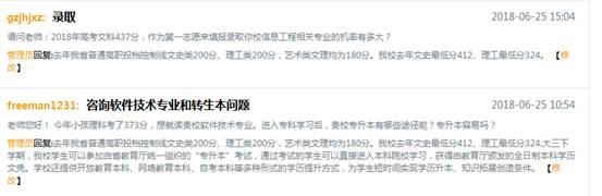 6月20至7月2日,由贵州省招生考试院、多彩贵州网联合主办的“2018年贵州高考网博会”(http://gzgk.gog.cn/)全面开启答疑模式,全国200多所院校的招生老师参加了此次活动。我校招就中心安排专人负责此次活动,于6月25日至6月29日进行了为期5天的在线答疑,为广大学生及家长就关心的各类问题作出解答,此次答疑参与人数近500人,回答各类问题近80个。