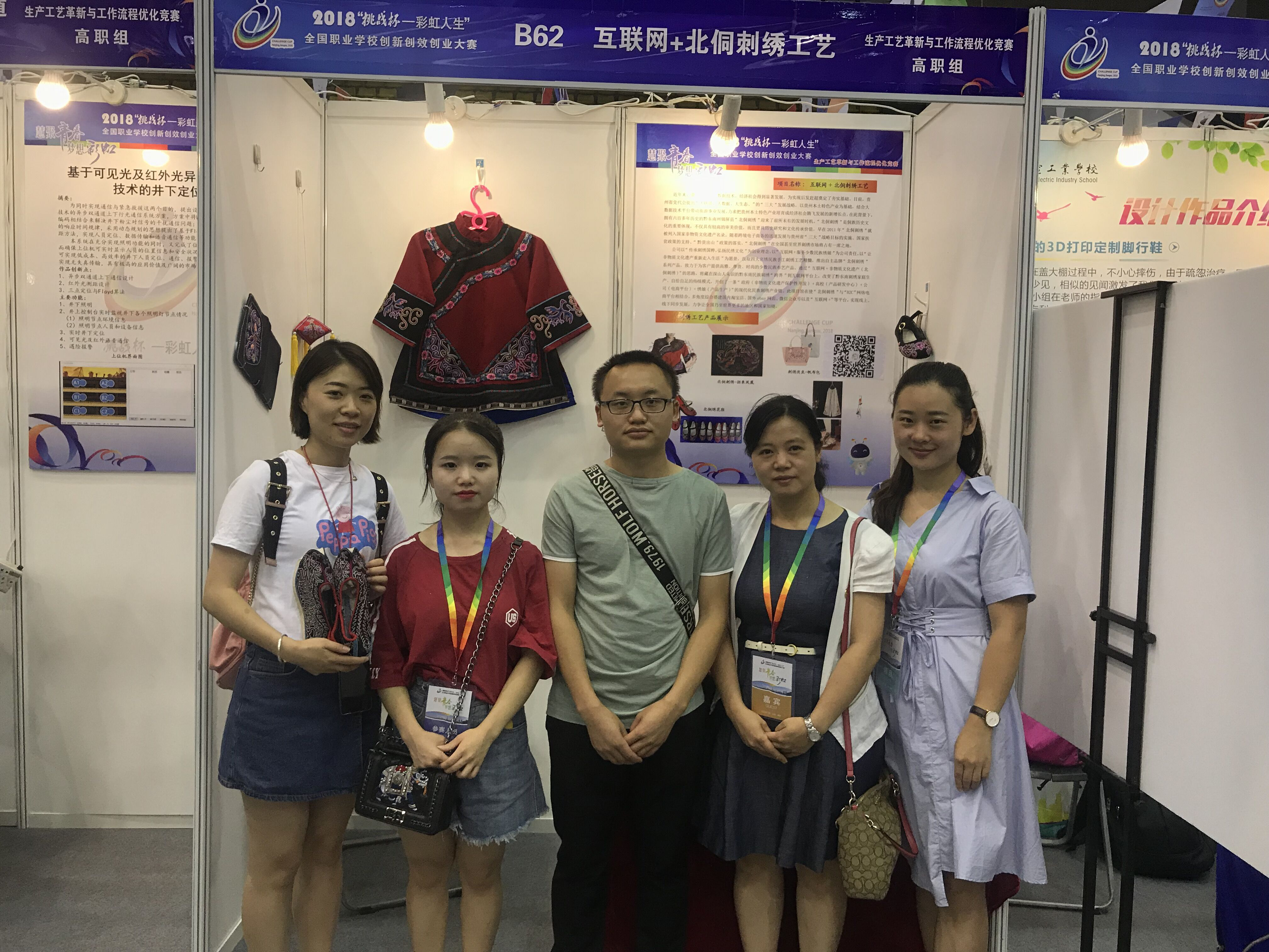 2018年“挑战杯——彩虹人生”全国职业学校创新创效创业大赛,终审决赛于8月14日-17日在南京举行。我校作品《互联网+北侗刺绣工艺》入围决赛,由团委副书记李雪芬老师带队,商业与贸易学院陆菁老师、罗晓吉、马金两位同学参赛,经过两天紧张而激烈的比拼,我校荣获全国二等奖。本次大赛由共青团中央、教育部、人力资源和社会保障部、中国科协、全国学联、江苏省人民政府主办。全国共有370件作品入围决赛。