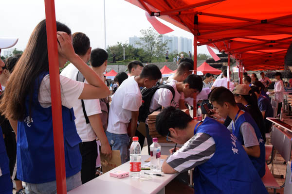 上午10时,迎新工作便进入高峰期,报到家长和新生熙熙攘攘,接踵而至,大量新生前来报到,接待处工作量骤然上升,整个迎新现场已是人声鼎沸,因前期工作准备充分,迎新工作人员和志愿者热情周到的服务让迎新工作井然有序。一丝微笑,一声问候,无不流露出学校对新生的关心,使新生真实的感受到了贵州职院大家庭的温暖。
