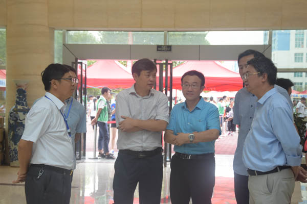 上午8时,校园内就充满了热烈而喜庆的氛围,各相关部门和各学院迎新工作人员、志愿者也早已到位,等待着新生的到来。为确保迎新工作顺利进行,学校党委书记王爱华,党委副书记、校长李皖,副校长龚辉、徐伟、李勤等校领导率相关部门负责人来到迎新现场检查指导迎新工作,逐一走访各学院迎新站点、绿色通道、收费处等,了解迎新工作流程和进展,与部分新生和家长亲切交谈,了解他们的实际需求,听取他们对于学校迎新工作的意见和建议,并向辛勤服务的老师和志愿者表示慰问和感谢。在绿色通道,校领导嘱托工作人员要认真、细致做好资助工作,保障每一位家庭经济困难的新生都能顺利入学,同时鼓励受助学生好好学习,度过充实的大学生活。