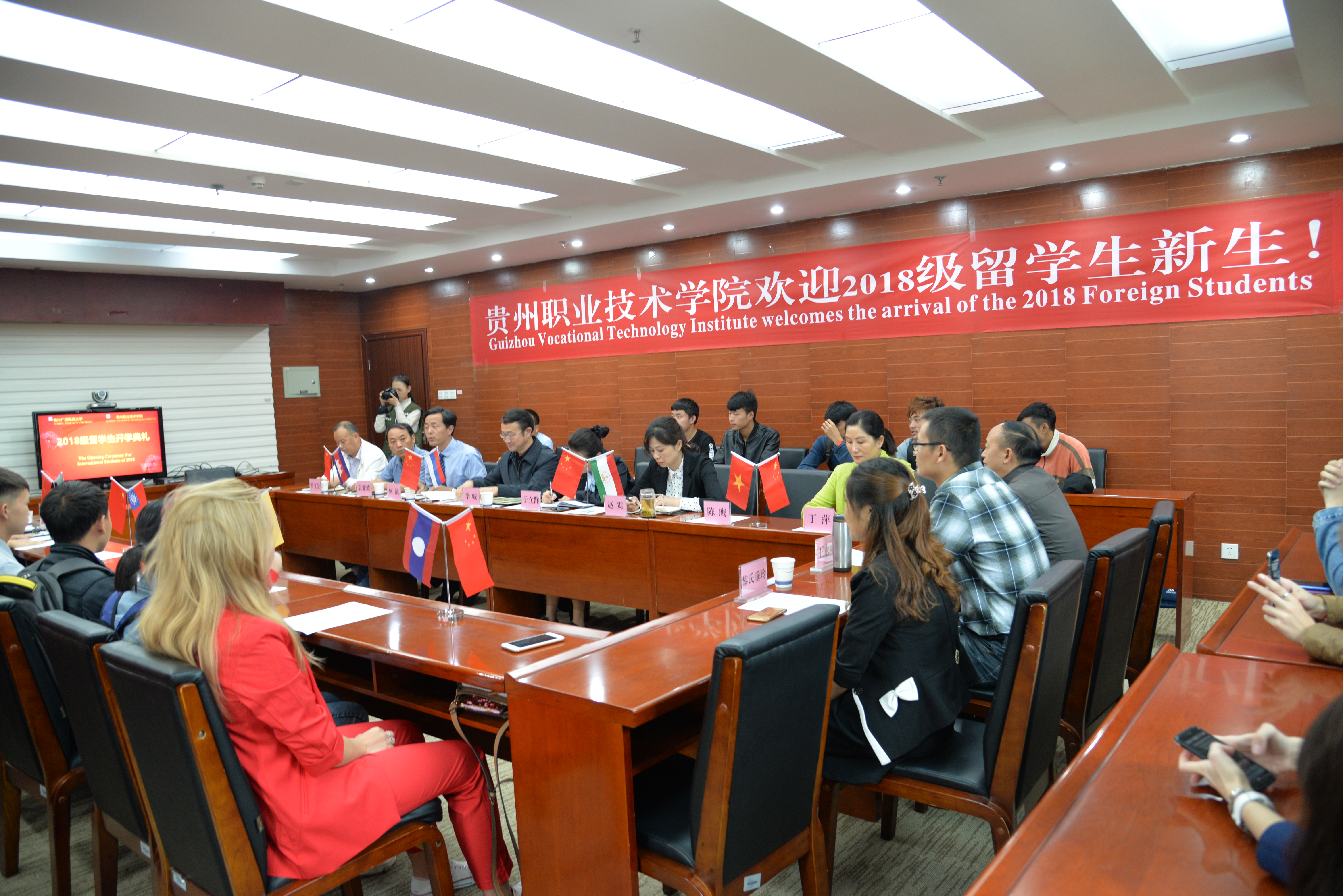 来自老挝的留学生代表叶骏贺发言,他表示来到贵州职业技术学院的这段时间充分感受到中国礼仪之邦的热情,学校也给予自己家一般的温暖。学校过硬的师资、完善的生活设施、人性化的服务以及优越的教育资源、高水准的教学质量都让我们对今后在这里的学习充满信心。今后,留学生们一定会不辜负校领导和老师们的期望,努力学习,同时也当好一名文化使者。教师代表也发言鼓励同学们,培养良好的学习兴趣,学好中国语言和中国文化。
