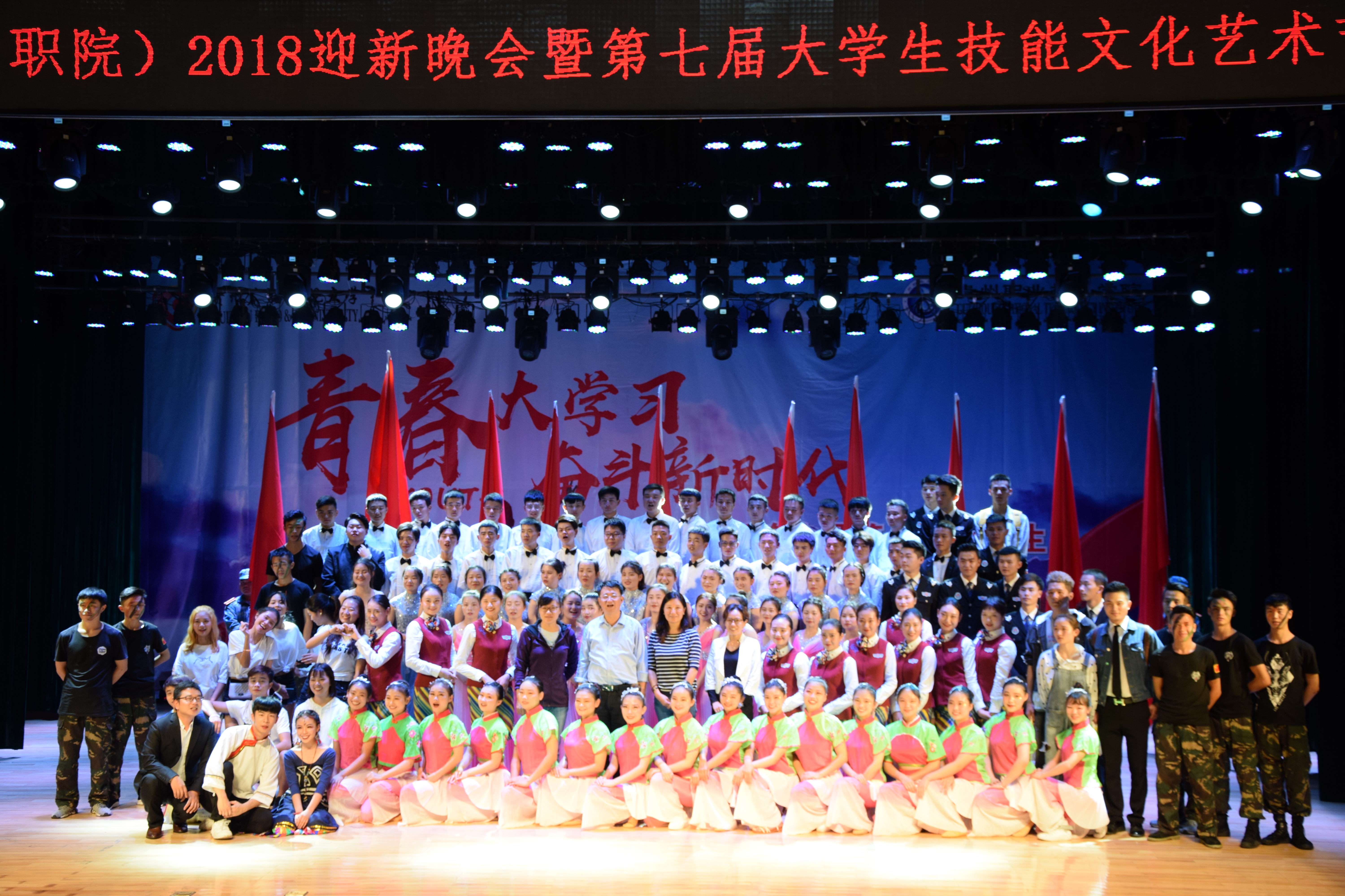 9月20日晚上7点,我校“青春大学习奋斗新时代”2018迎新晚会暨第七届大学生技能文化艺术节开幕式在学校礼堂隆重举行,本次活动由我校主办,校团委承办,校学生会、社团联合会协办。学校党委委员、副校长徐伟老师,各学院及学生工作相关部门负责人出席活动,大一新生和国际学院留学生800余人参加活动。