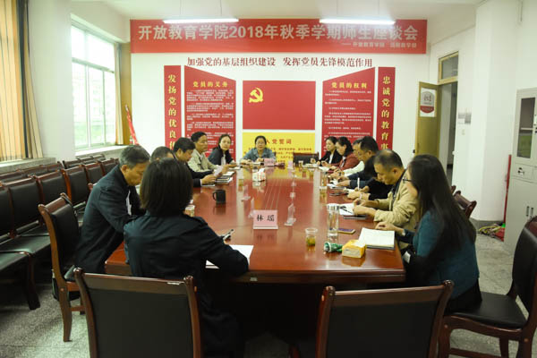 9月27日上午,校党委书记王爱华同志在八鸽岩校区B栋3楼党员活动室与校区部门代表座谈,探讨新时期电大转型升级和开放大学建设的思路和措施,进一步激励大家奋力书写电大转型与高质量发展的奋进之笔。