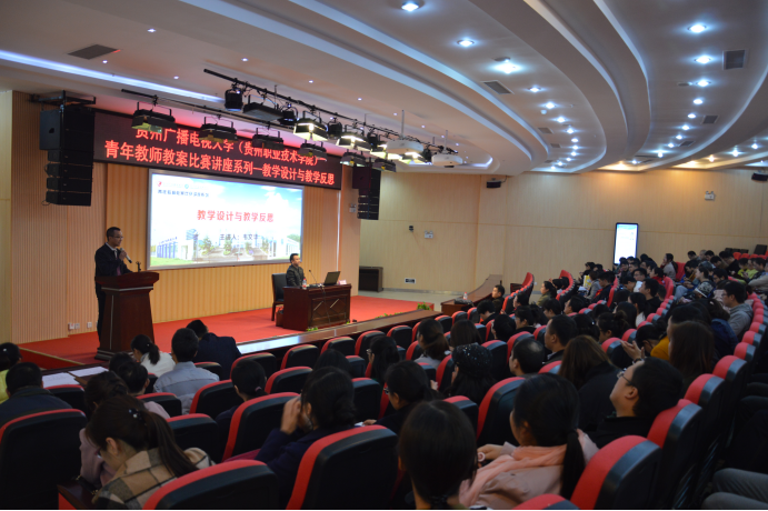 2018年10月23日下午,由学校教务处牵头举办的贵州广播电视大学(贵州职业技术学院)首届青年教师教案比赛系列活动之青年教师教案设计讲座如期开讲。本次讲座我校荣幸地邀请到了贵州师范大学硕士研究生导师韦文华教授为我校教职工带来精彩的讲座,讲座由我校教务处杨家兴副处长主持。