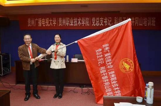 最后,曾建平校长授予班旗,宣传委员丁萍接过班旗,开班仪式在激情高涨的掌声中结束。