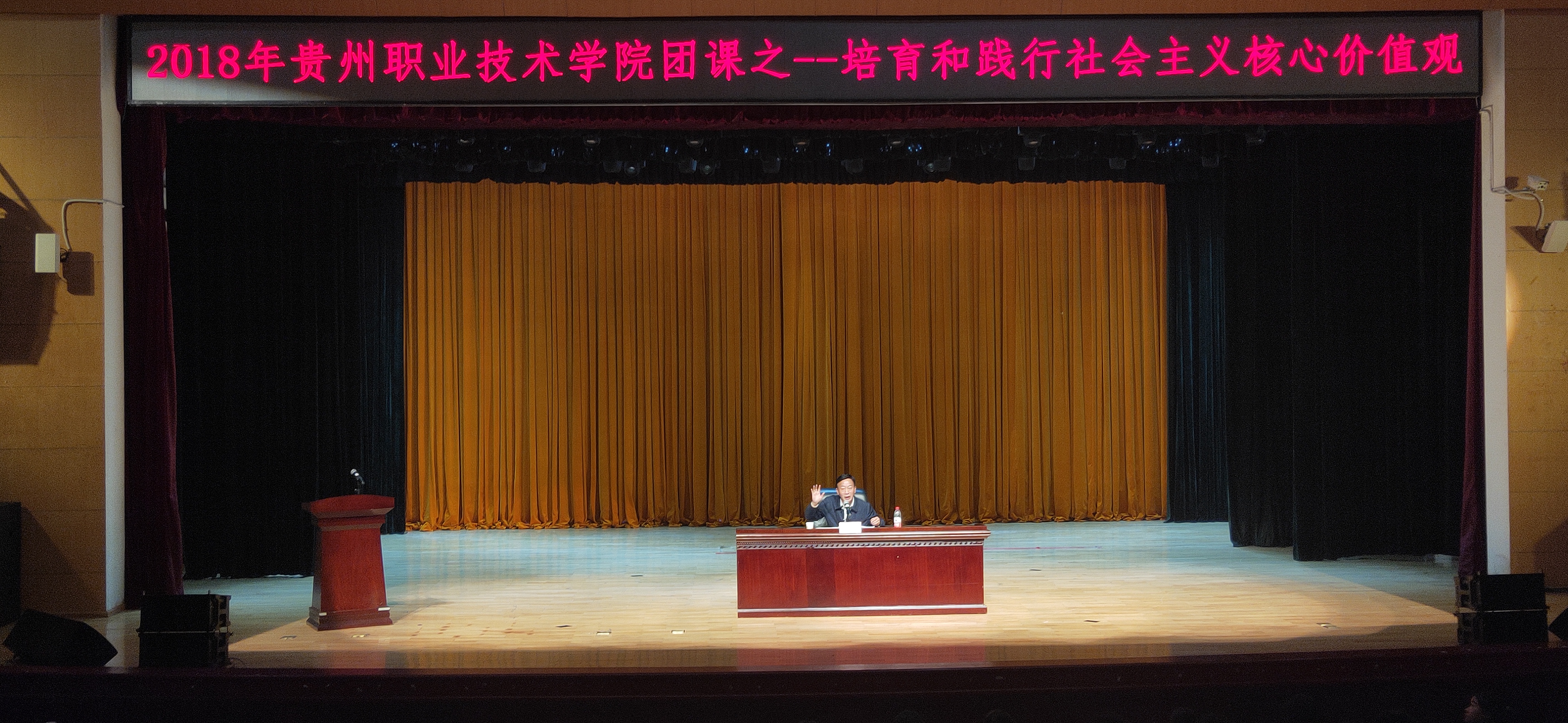 为积极培育和践行社会主义核心价值观,不断巩固广大青年学生团结奋斗的思想道德基础,我校于2018年11月5日19:00,在学校大礼堂举行主题团课,由学校党委副书记郭万才老师主讲,团委、各学院的团干部和全体学员共800余人参加。