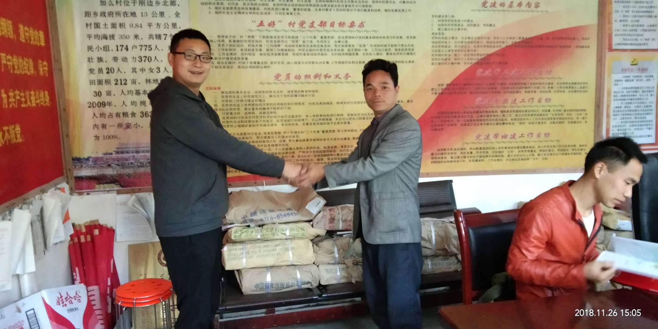 为扎实推进精准扶贫工作,有效改善贫困乡村村民的阅读条件,让更多的贫困户拥有多读书、读好书的机会,实现更有价值、更有意义的教育扶贫。11月27日下午,在贵州广播电视大学(贵州社区教育服务中心)的大力支持下,加么村举行“农家书屋”挂牌仪式。包片副乡长李伟、驻村第一书记张硕、村支书韦国勤及全体村干、少数村民代表参加了活动。