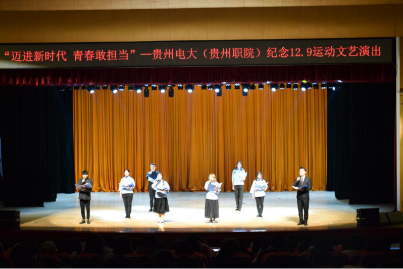 12月10日晚上7点,由校团委主办的“迈进新时代 青春敢担当”——纪念12.9爱国运动文艺汇演在我校大礼堂隆重上演,校党委副书记郭万才老师、各学院党总支书记及相关部门负责人出席活动,全校师生代表800余人参加。