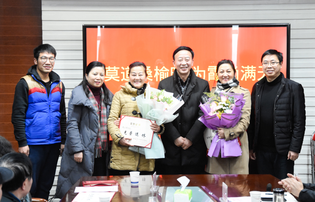 徐伟副校长首先代表学校致词,感谢他们几十年来在各自岗位上勤勤恳恳、任劳任怨的忘我工作,把青春和智慧都奉献给了学校。感谢他们一心为公,心地无私,顾大局,识大体,始终与学校同呼吸共命运,风雨同舟,共渡难关。感谢他们心系学校发展,心怀报校之志,想学校之事,解学校之忧,自觉参与一系列改革改制,积极参加急难险重的建设任务,为学校发展献计献策、贡献自己的力量。“莫道桑榆晚,为霞尚满天”,希望他们继续关心支持学校发展,多为学校发展献计献策。并衷心地祝愿他们能在未来的日子里老有所乐,身体健康,阖家欢乐,万事如意!