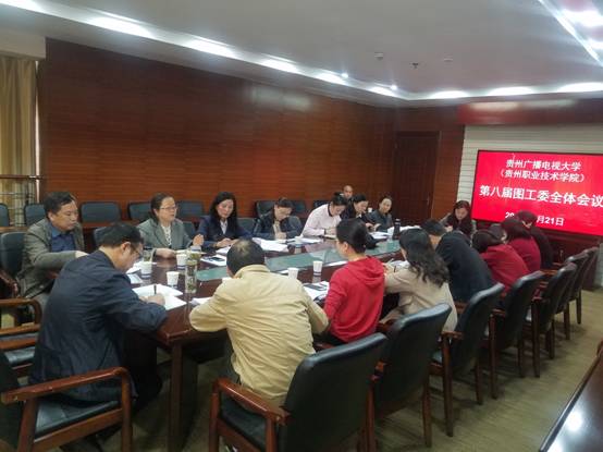 3月21日,贵州广播电视大学(贵州职业技术学院)第八届图书馆工作委员会全体会议在云潭南路校区行政楼6楼会议室召开。学校图书馆工作委员会主任、校长李皖,图书馆工作委员会副主任、副校长钱庆生、李勤,以及学校图工委委员出席会议。图书馆副馆长田为主持会议,并汇报了图书馆2018年工作情况以及2019年工作计划。