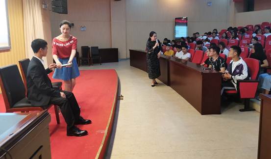 讲座开始,蔡老师先向在场同学提出来几个问题:大学生要如何在面试中取得深刻良好的第一印象;大学生要如何自信地表达实现与考官的良好沟通;大学生如何在面试中塑造职业人的专业形象;大学生如何从容举止在众人中脱颖而出。随后蔡老师讲解了大学生的求职形象、职场形象管理标准,并根据现场同学的着装为例,重点解构了职场形象品质突显的标准,并邀请同学上台演示站姿、坐姿、目光和手势等,让现场同学身临其境的学习了职场仪态的礼仪规范。最后模拟了企业面试的场景,让同学们感受了职场称呼、介绍、握手、引领等会面礼仪,传授了基本职场礼仪及实战教学,避免因礼仪妆容不当而与工作机会失之交臂。