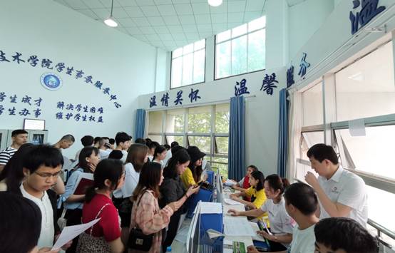 为确保2019届毕业生安全、文明、有序、愉快离校,6月27日,我校学工部协同相关部门入驻学生事务服务中心及知行楼3楼、4楼部分教室开展2019届“一站式”毕业生离校手续集中办理服务。资助中心、财务处、各学院、图书馆、后勤处等部门齐心协力,精心组织,统筹安排,为毕业生提供优质、高效毕业离校手续办理服务工作,截至目前已办理离校手续毕业生共3141人。