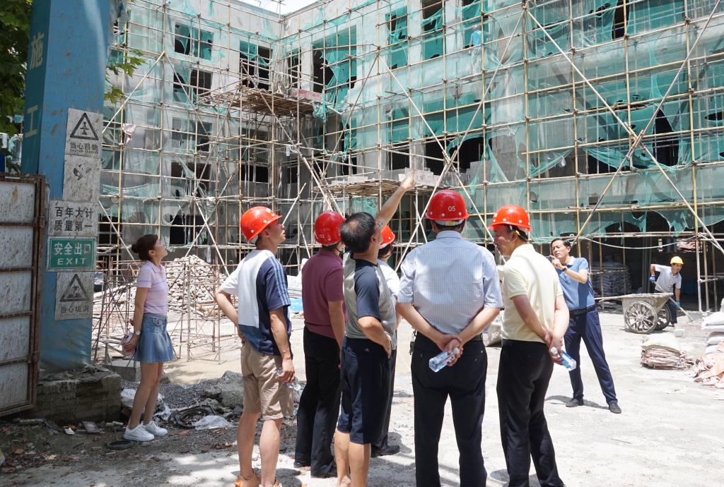 学校领导一行实地查看了学校教学楼外立面改造、红色文化广场、学生宿舍、教学科研楼施工现场。入伏以来,天气炎热、太阳火辣,王爱华书记和负责监理的老师、施工工人一一握手,感谢他们为学校建设做出的贡献并叮嘱大家务必注意施工安全。学校领导一行详细询问后勤处相关同志项目进程以及施工过程中的困难和安全生产措施落实等情况。王爱华书记强调,学校建设要以节约环保的理念贯穿其中,移除的地砖和树木等一定要再次合理利用,坚决杜绝铺张浪费。对于项目建设,王爱华书记要求后勤处同志要严守规矩,严管质量,强调项目要本着对历史负责、对全校师生负责、对本人负责的态度,一定要多措并举,同时加强过程监督并有记录;加强过程质量查收并有记录;加强验收质量查收并有记录。党委副书记、校长李皖强调建设项目要注重统筹安排,加强质量监督,必须保证重点项目建设。党委副书记郭万才表示施工就是“认真”二字,他要求项目负责人必须认真监管,随时和相关部门、施工方等保持良好沟通,确保项目建设质量。副校长龚辉要求后勤处同志越是艰险越要向前,要有高度的责任感和使命感,严格执行保密制度,当前所有项目已是箭在弦上,要团结一心,按期保质保量完成工作。