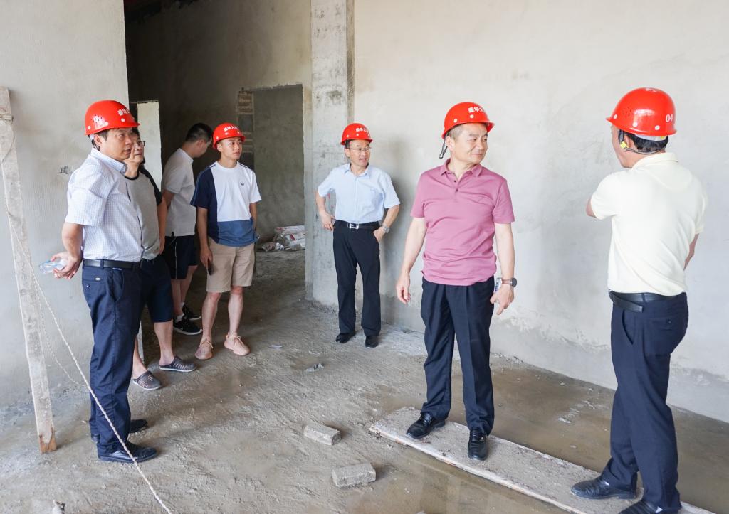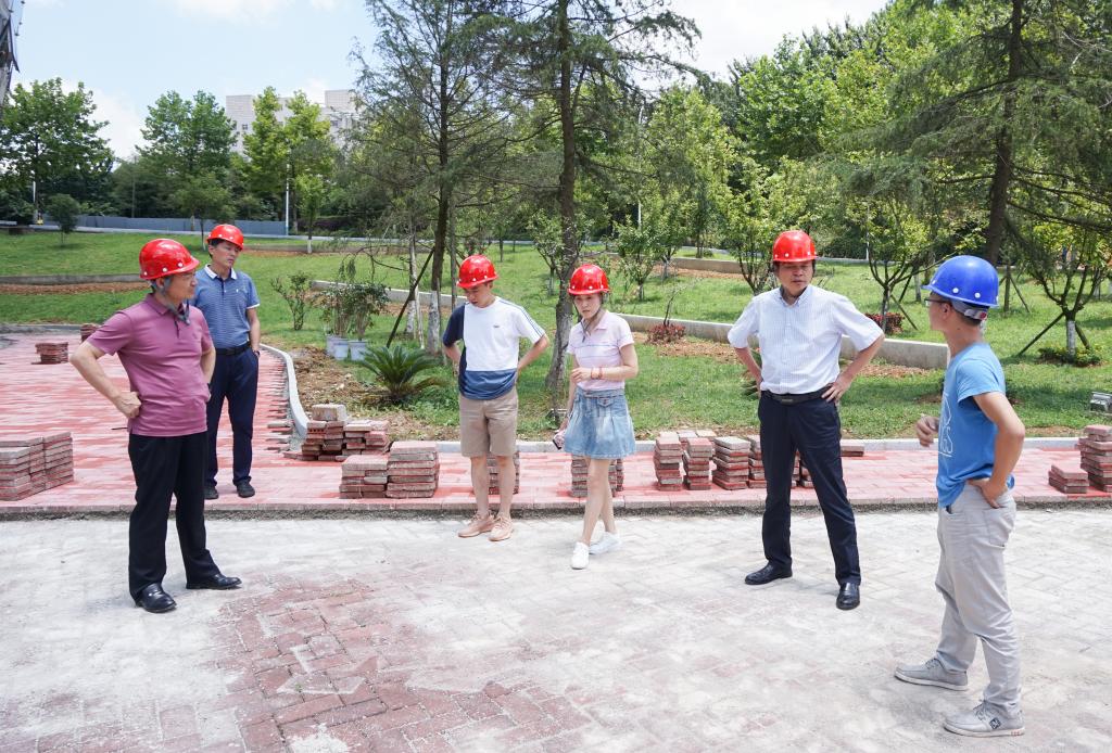 学校建设是解决学校发展问题的民生实事工程。2019年暑期已将近过半,校园改造工程建设进度如何 ,推进过程中有哪些问题?能否按计划投入使用?一直是学校党委班子关注的重点。8月1日,贵州广播电视大学(贵州职业技术学院)党委书记王爱华、党委副书记、校长李皖、党委副书记郭万才、副校长龚辉再次查看校园改造工程进展情况。办公室、宣传部、后勤处相关同志随同查看。