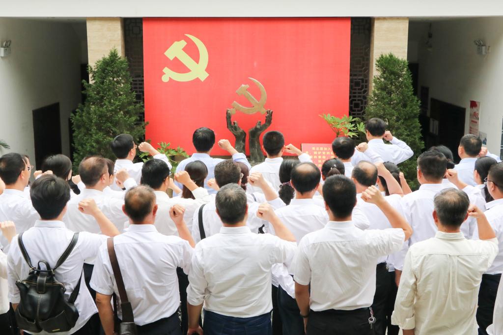 “我志愿加入中国共产党,拥护党的纲领,遵守党的章程,……”熟悉的誓词再一次响起,在党委书记王爱华同志的带领下,党员们面对庄严的党旗,再一次举起了右手。八十个字的入党誓词是每个同志对党的铮铮誓言,对党的庄严承诺,让每一位党员同志的心灵再次受到震撼和洗礼。也启示我们要不忘初心,牢记使命,坚守信仰,坚定信念,增强“四个意识”,坚定“四个自信”。