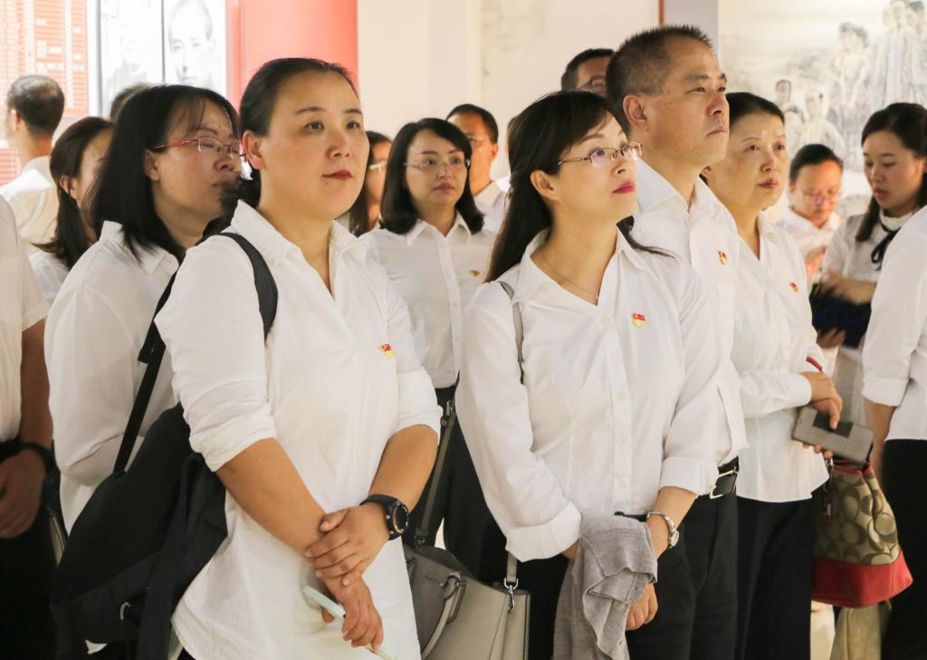 在讲解员的精彩讲解下,全体成员从党的创立时期、党的早期斗争、抗日战争时期党的发展、解放战争时期党的活动、薪火传承·辉映未来等五个部分。一幅幅生动的图片,一件件鲜活的实物,一段段可歌可泣的故事,全方位展示着先烈们的革命精神和奉献情怀,深深打动了在场的每一位领导干部。