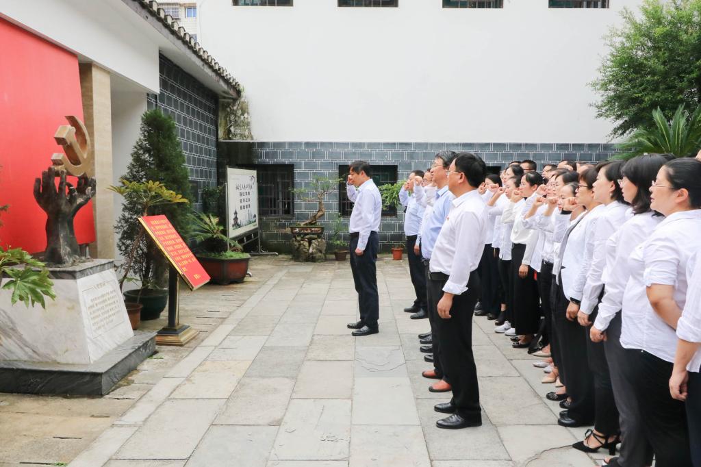 缅怀先烈,牢记历史,做新时代忠诚担当共产党人。9月19日下午,按照《中共贵州广播电视大学(贵州职业技术学院)委员会“不忘初心、牢记使命”主题教育集中学习研讨方案》,为进一步做好党员领导干部革命传统教育,学校组织全体校领导以及70余名副处级以上领导干部赴贵州省工委旧址参观学习。
